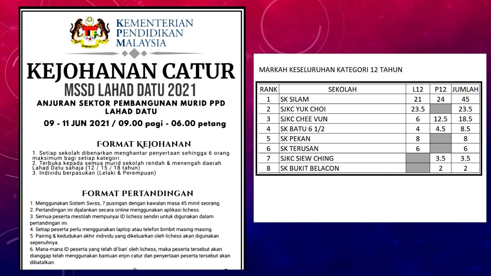 KEJOHANAN CATUR MSSD LAHAD DATU 2021