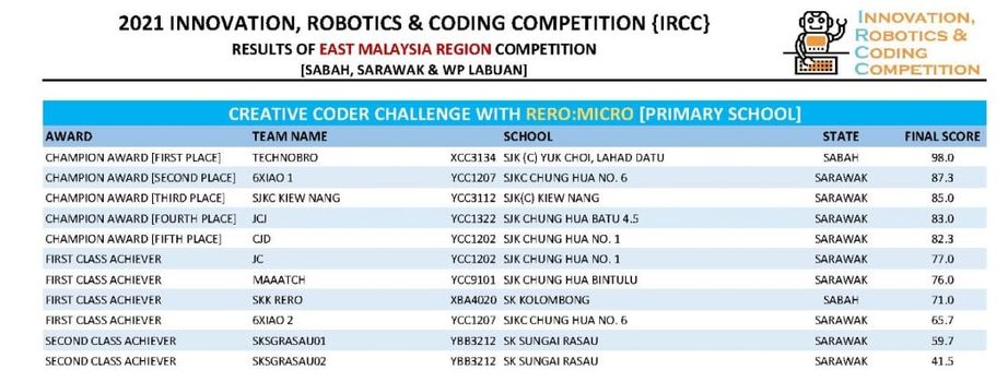 Results of East Malaysia Region Competition
