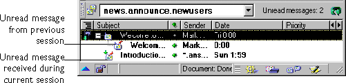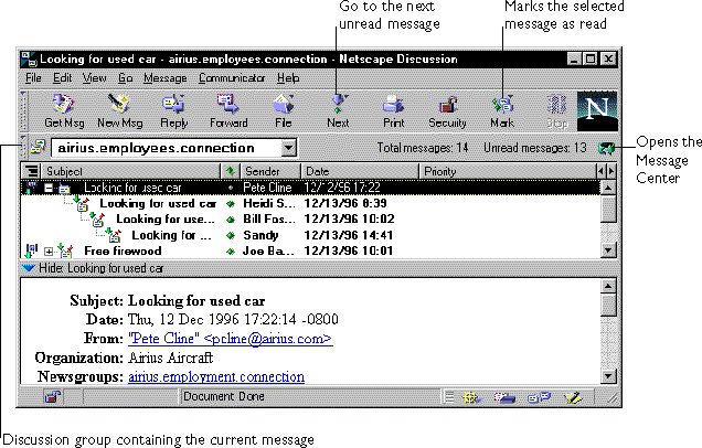 a discussion group to see its messages in a message list window.