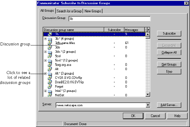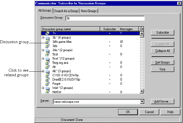 one discussion server, choose the server whose discussion groups you want